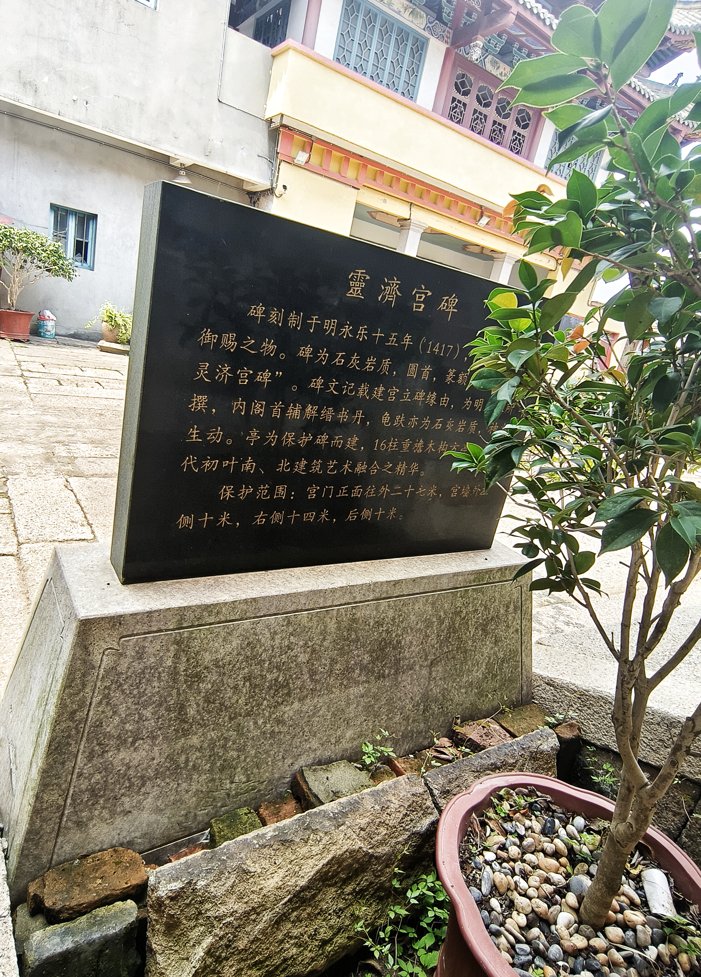 明永乐二五年(1417年),建灵济宫碑亭;明永乐十六年(1418年),灵济宫碑御制于南京。灵济宫碑具有明代官式风格,是福建省已发现的最大古碑之一。