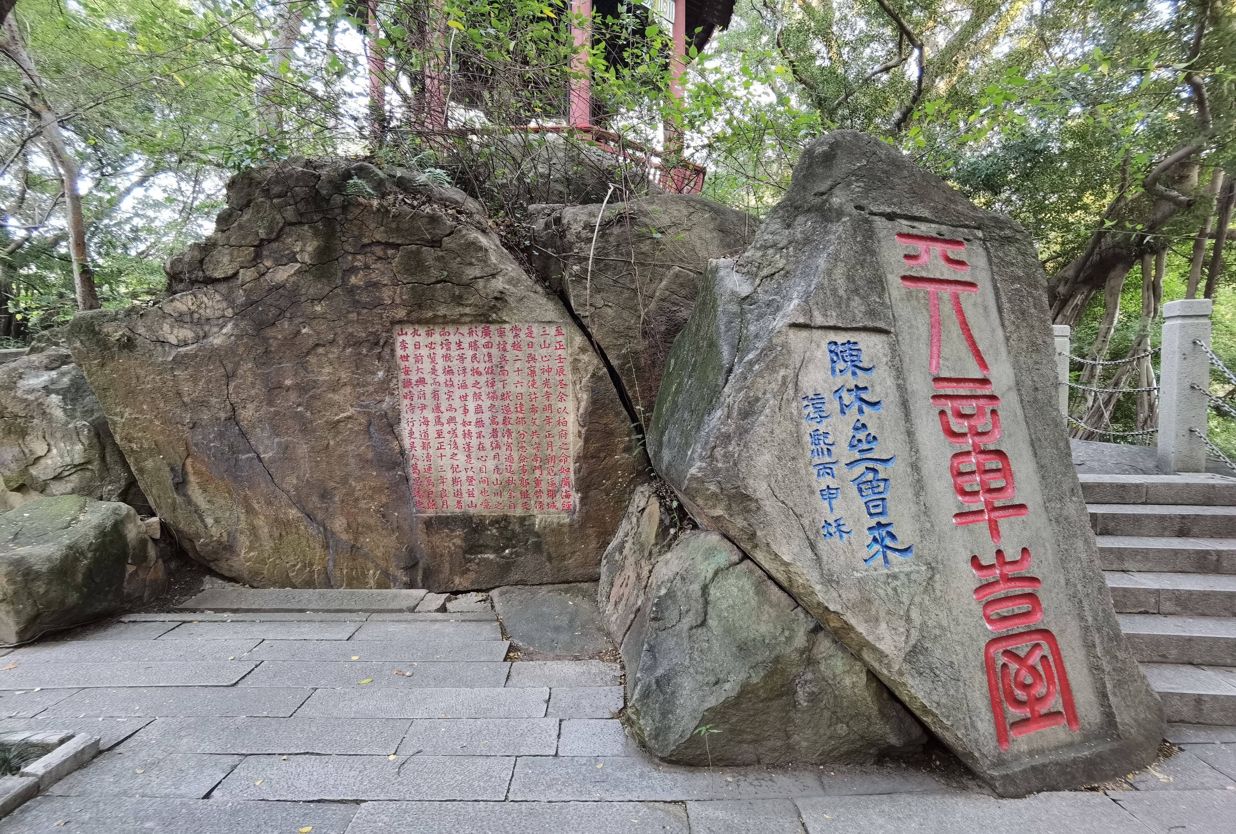 乌山景区三十六奇之一——天章台。此台如飞来之天赐印章,各朝文人墨客均以到此饮酒唱和为乐,因而为天章台留下了不少感怀诗词。传天章台三字乃宋熙宁年间福州郡守程师孟的篆书手迹。