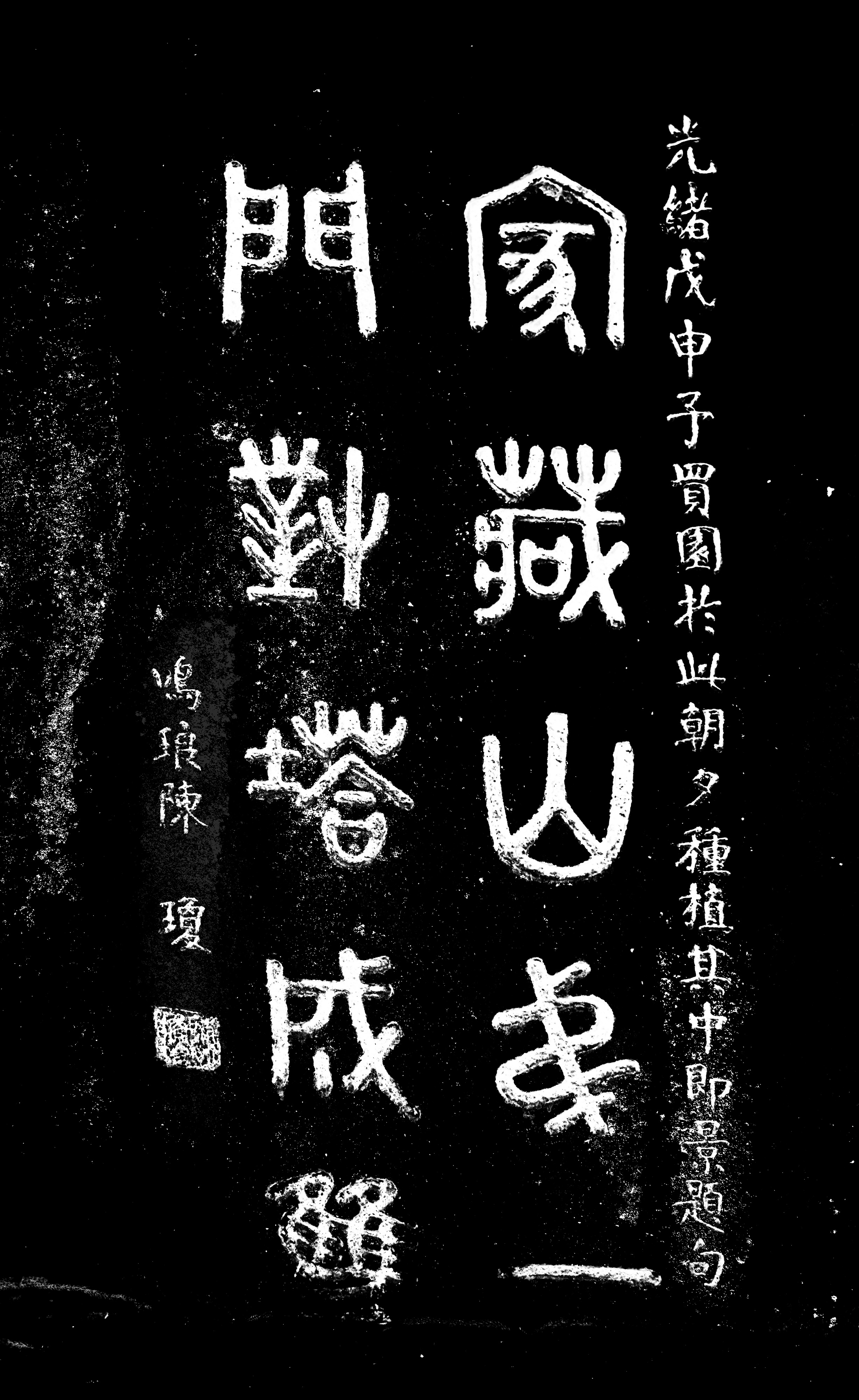 光绪戊申,予买园于此,朝夕种植其中。即景题句,鸣琅陈琼。