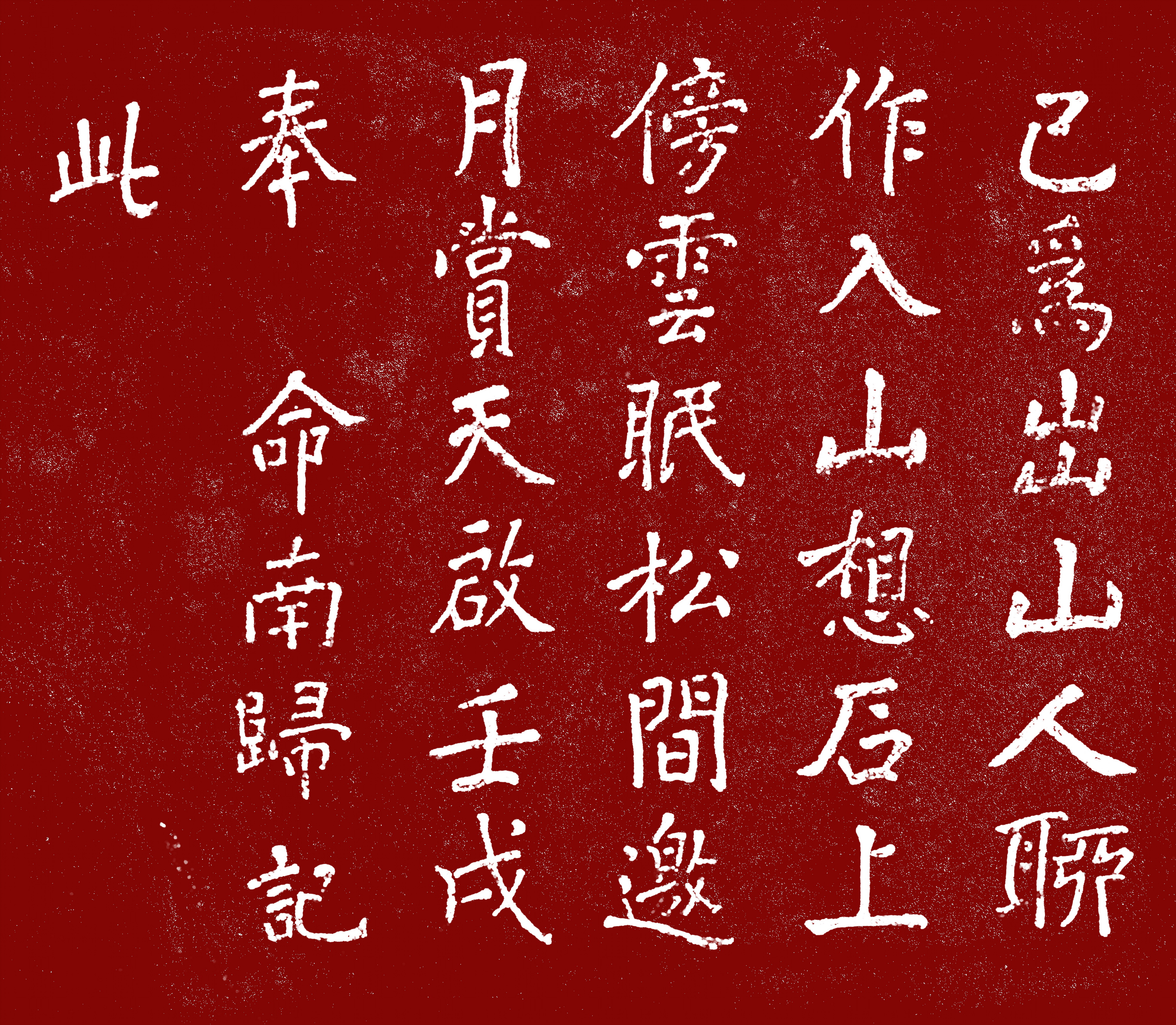 尺寸:高97厘米,宽120厘米。楷书,纵5行,字径11厘米