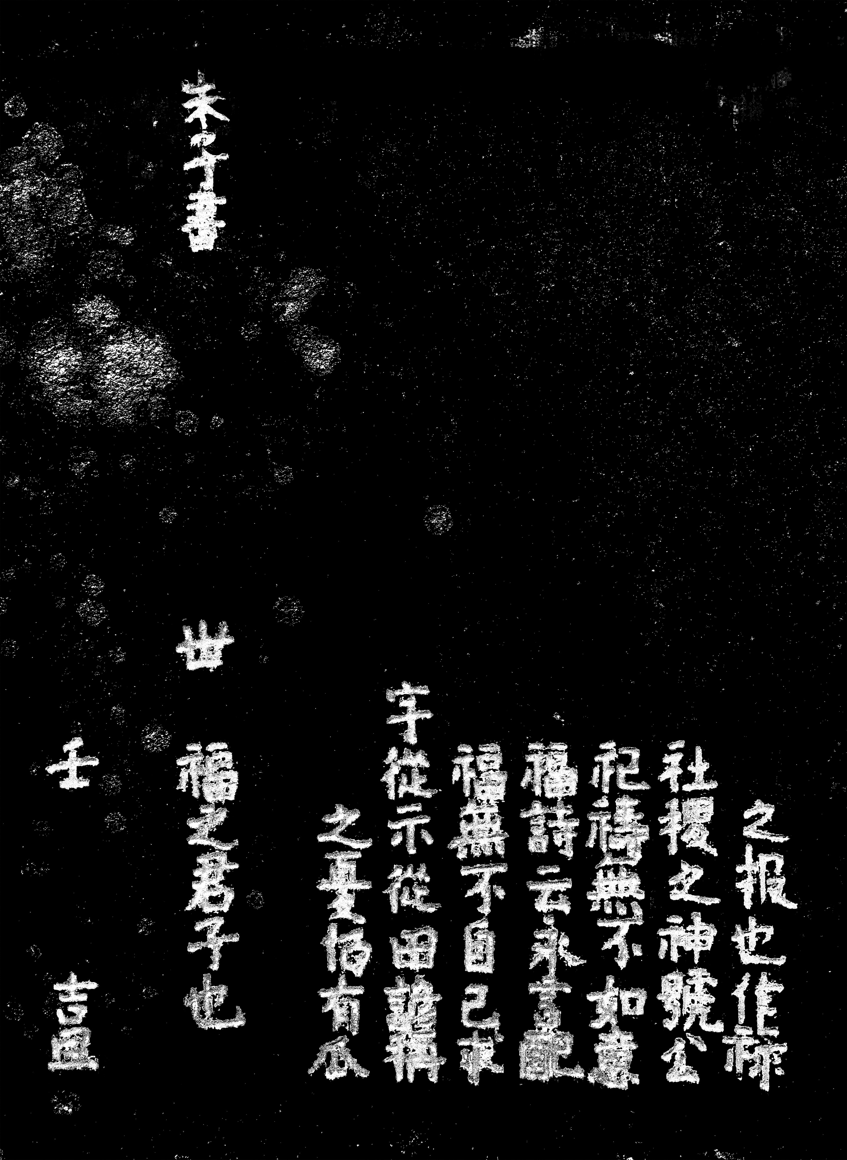 题字:……之报世作禄……社稷之神号公……祷无不如意……示从田谚……之忧仍有瓜……朱子书……之君子也……吉旦。